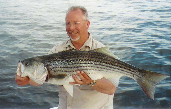 - April Through December - He fishes the Chesapeake bay out of Crisfield Maryland catching striped bass, speckled trout, bluefish, flounder, red drum, and hound fish.